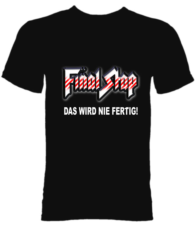 B&C T-Shirt schwarz 99% Baumwolle mit farbigem Aufdruck „Final Stap – Das wird nie fertig!“