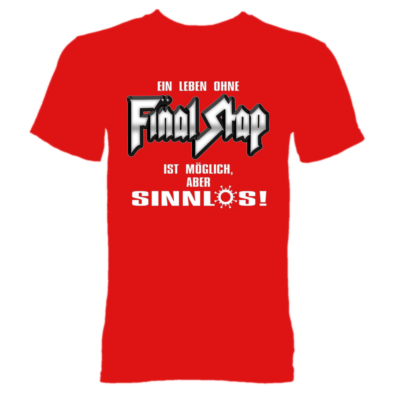 B&C T-Shirt rot 99% Baumwolle mit farbigem Aufdruck „Ein Leben ohne Final Stap ist möglich aber sinnlos!“